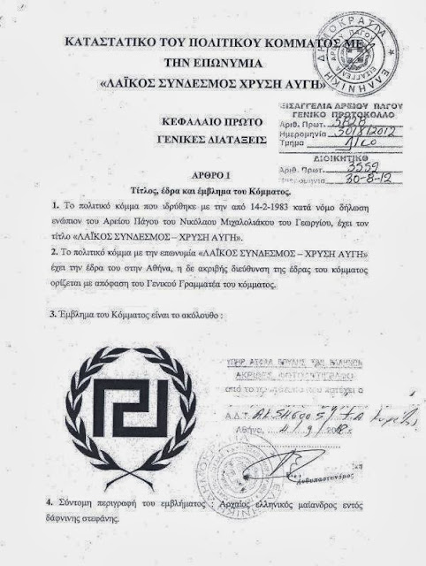 Δείτε το καταστατικό της Χρυσής Αυγής που έχει κατατεθεί αρμοδίως κατα την σύστασή της...