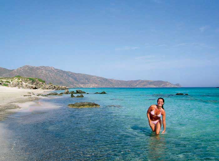 | Αν επισκεφτείτε τα Χανιά της Κρήτης μην παραλείψετε ν' αφιερώσετε μια μέρα των διακοπών σας για μια εκδρομή στο Ελαφονήσι. Βρίσκεται στο νοτιοδυτικό άκρο της Κρήτης και διαθέτει πεντακάθαρα, κρυστάλλινα νερά και παρθένες αμμουδιές με λευκή και ροζ κοραλλιογενή άμμο. Επιπλέον τα νερά είναι τόσο ρηχά που μπορείτε να περπατήσετε μέχρι το νησάκι Ελαφονήσι, απ' όπου... ...η περιοχή πήρε και το όνομά της. Η περιοχή αποτελεί καταφύγιο για διάφορα είδη πουλιών, μεταξύ των οποίων οι Γυπαετοί, καθώς και ενός σπάνιου είδους κέδρου και γι' αυτό είναι προστατευόμενη. Συναρπαστικό και ευχάριστο είναι επίσης και το ταξιδάκι από τα Χανιά στο Ελαφονήσι με μια διαδρομή που περνάει μέσα από γραφικά χωριουδάκια, από το φαράγγι και τη σήραγγα των Τοπολίων και όμορφες σπηλιές. | |